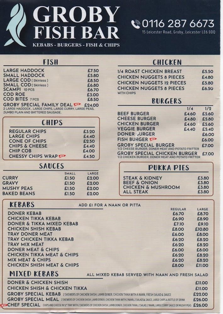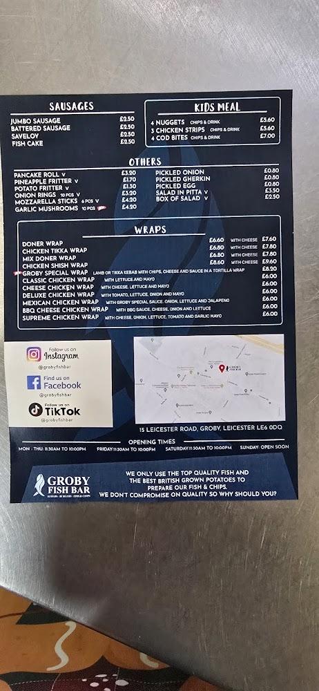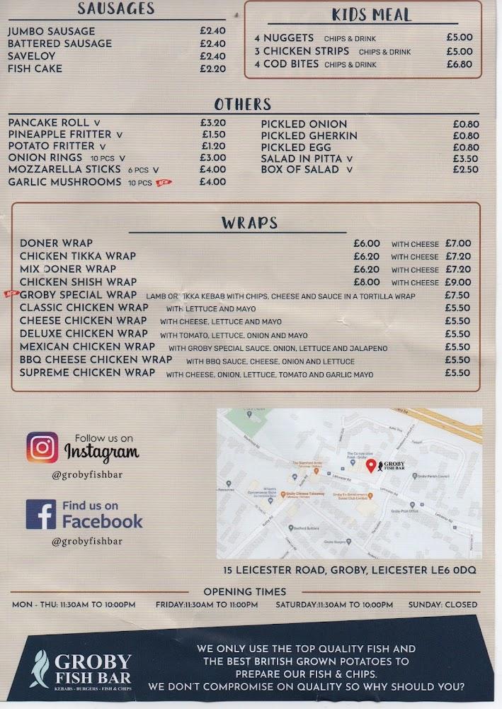 Groby Fish Bar sits at 15 Leicester Rd in the heart of Groby, Leicester. This charming takeaway has built a reputation for quality, cleanliness, and friendly service. It’s open seven days a week, catering to both lunch and dinner crowds. The shop is small but efficient, capturing the essence of local charm. Not only is it easy to access for residents, but it’s also well-known among fish and chip enthusiasts across the region.